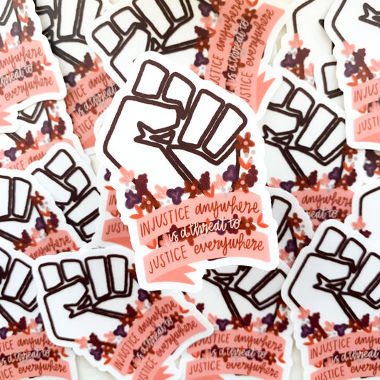 injustice anywhere is a threat to justice everywhere clear sticker